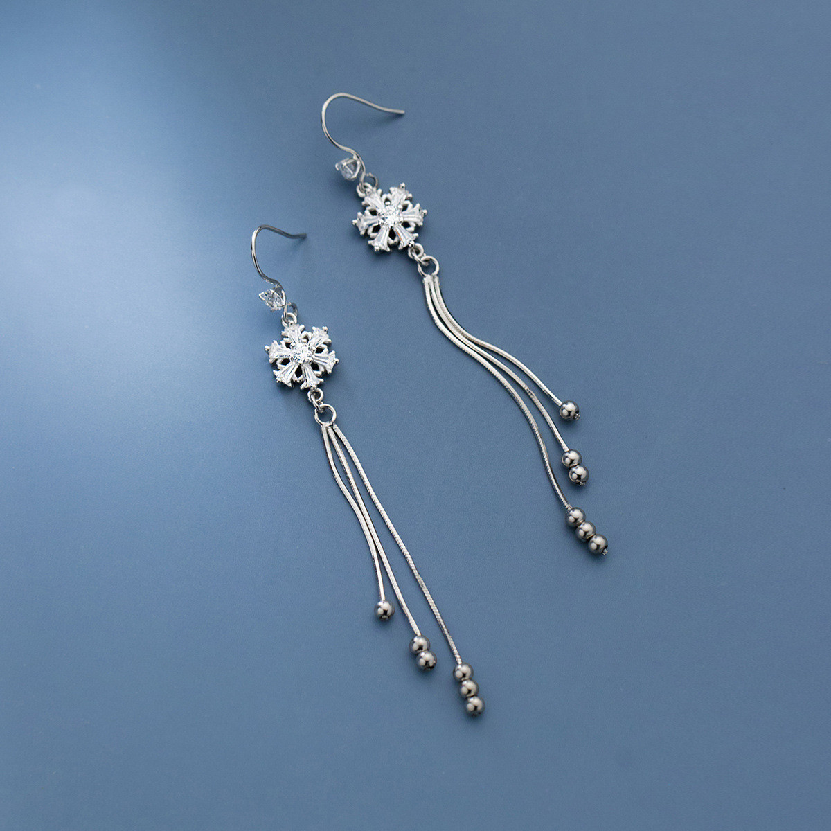 s925 sterling silver snowflake christmas sparkling flower piercing earrings