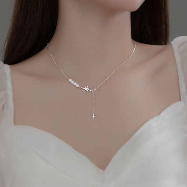 s925 sterling silver chic simple pearl trendy sweet necklace