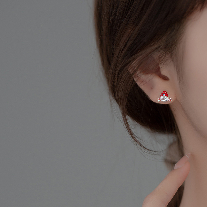 s925 sterling silver chic asymmetric rhinestone small sweet earrings