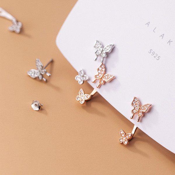 s925 sterling silver simple asymmetric hollowed red butterfly chic earrings