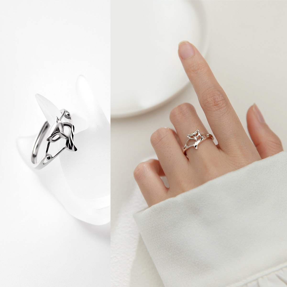 s925 sterling silver trendy rhinestone doublelayer adjustable ring