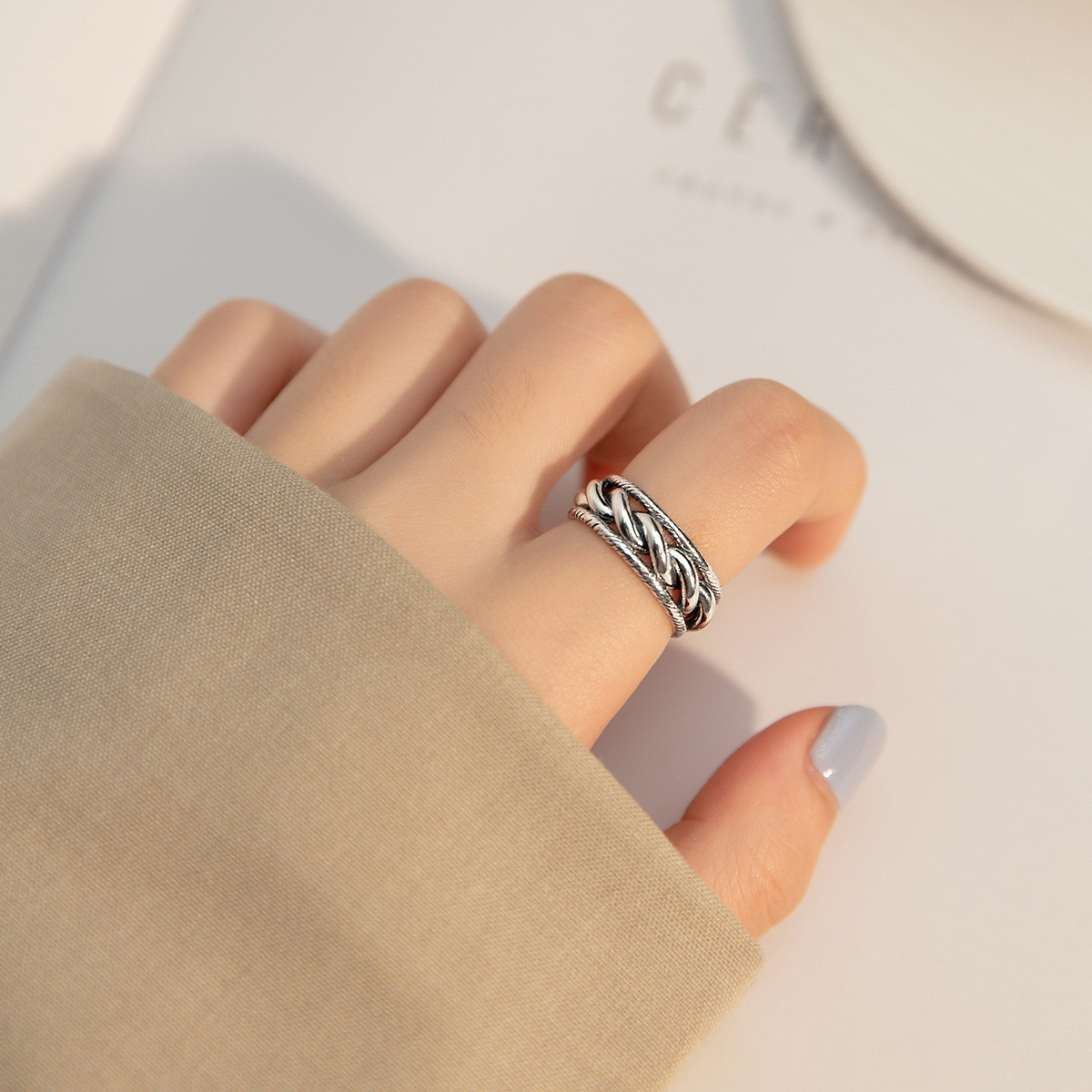 design irregular wrinkled qualitys925 sterling silver adjustable ring