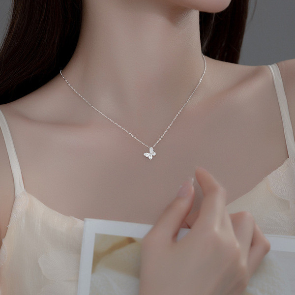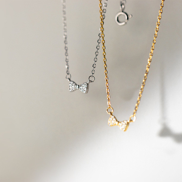 s925 sterling silver trendy simple chic sweet bar bow necklace