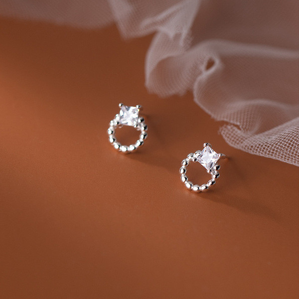 s925 sterling silver chic trendy rhinestone simple piercing earrings