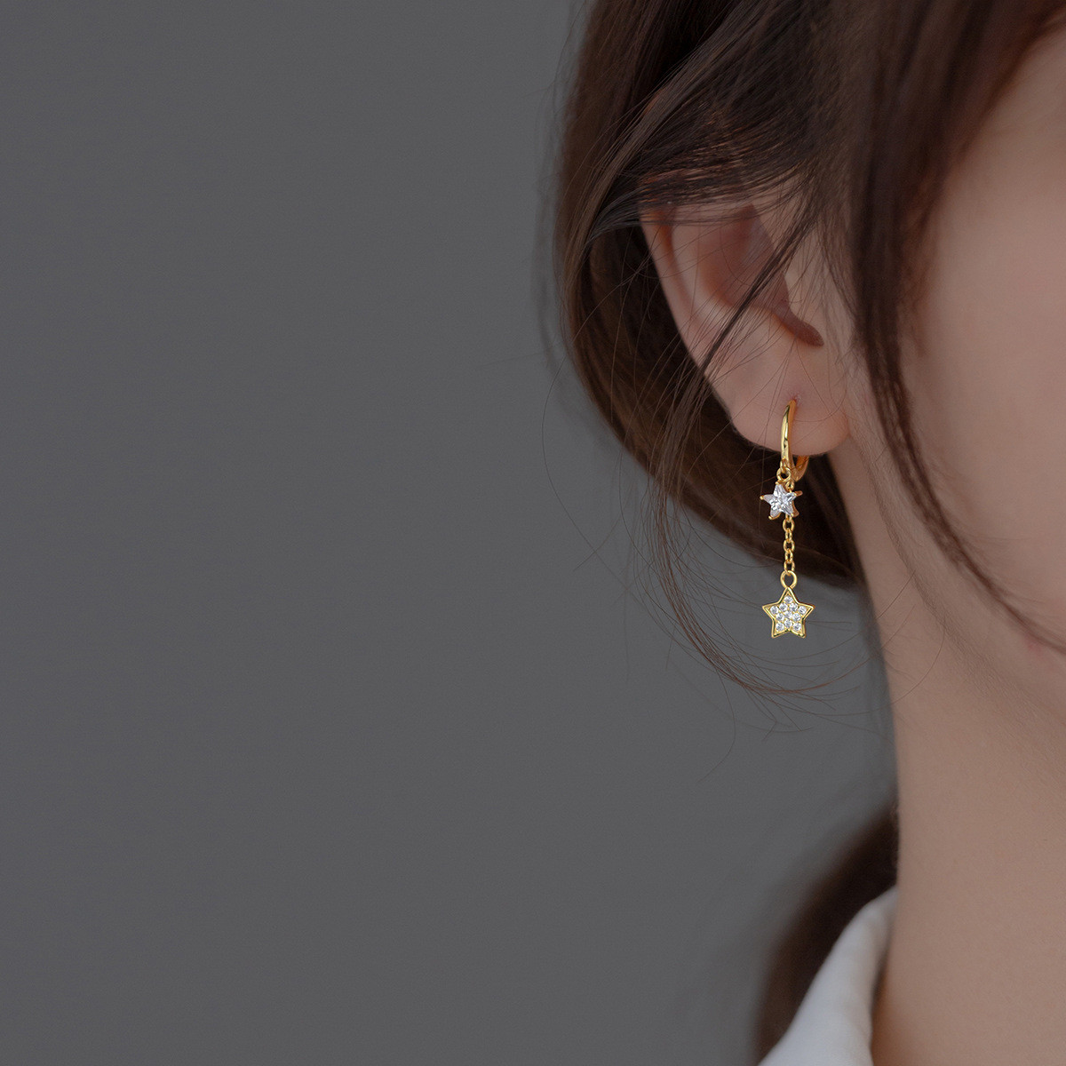 s925 sterling silver cute star rhinestone earrings