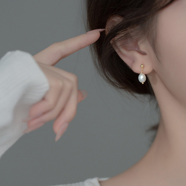 s925 sterling silver clipon trendy pearl doublelayer piercin earrings