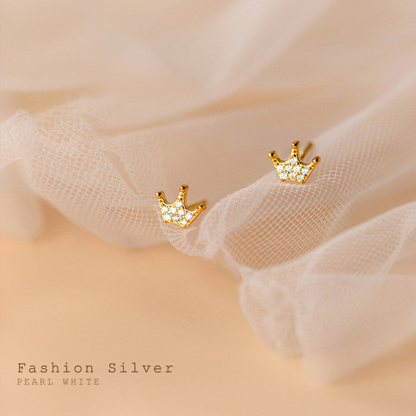 s925 sterling silver chicins rhinestone hollowed crown earrings