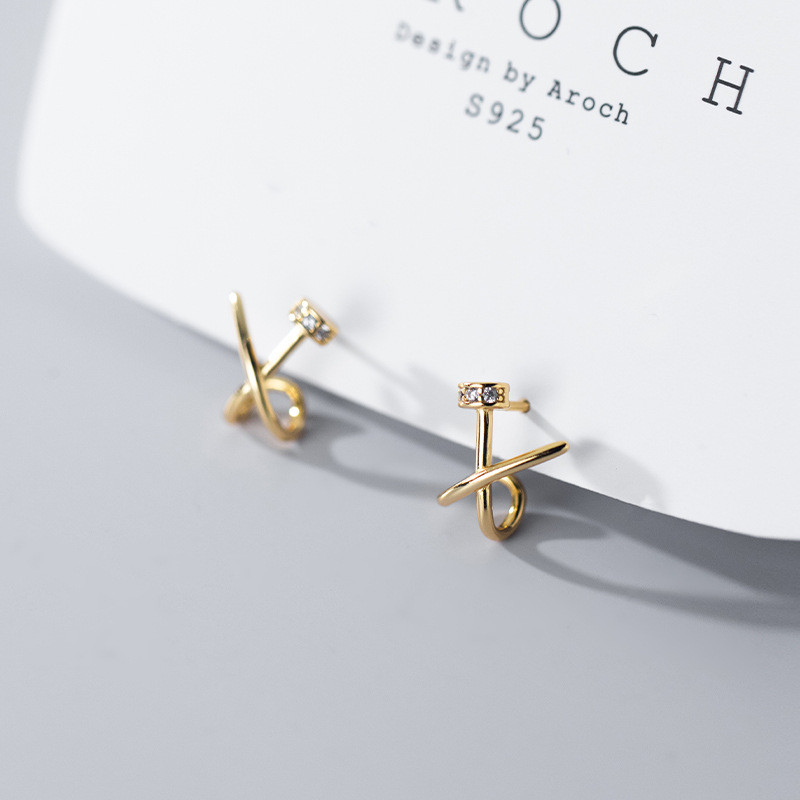 s925 sterling silver rhinestone hollowed stud trendy design earrings