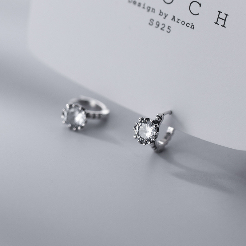 s925 sterling silver chicins rhinestone hollowed crown earrings