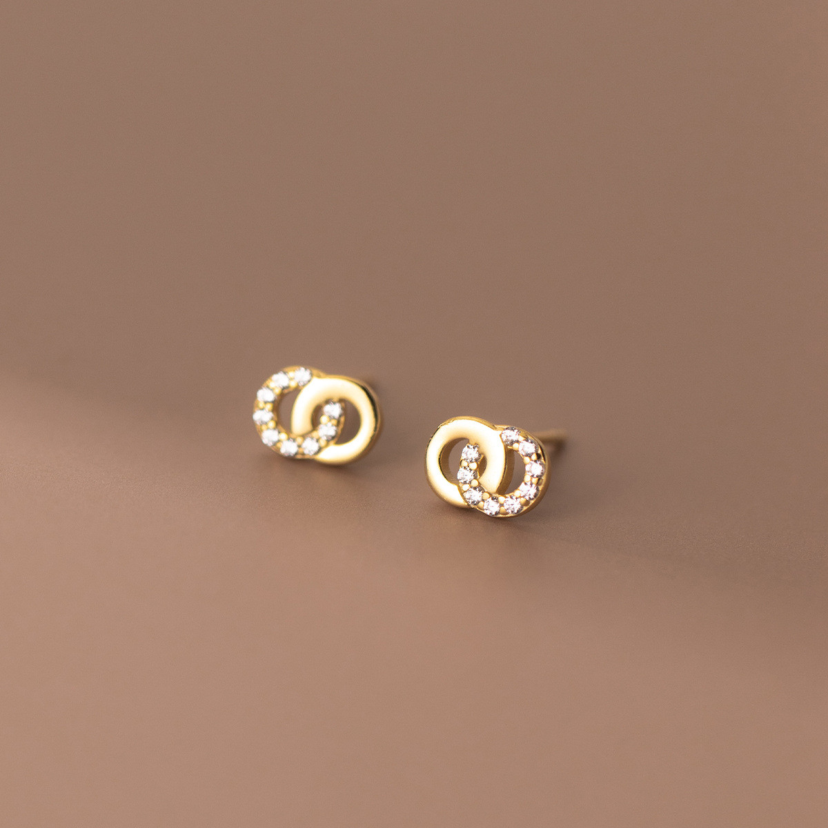 s925 sterling silver rhinestoneU simple chic cute fashion earrings