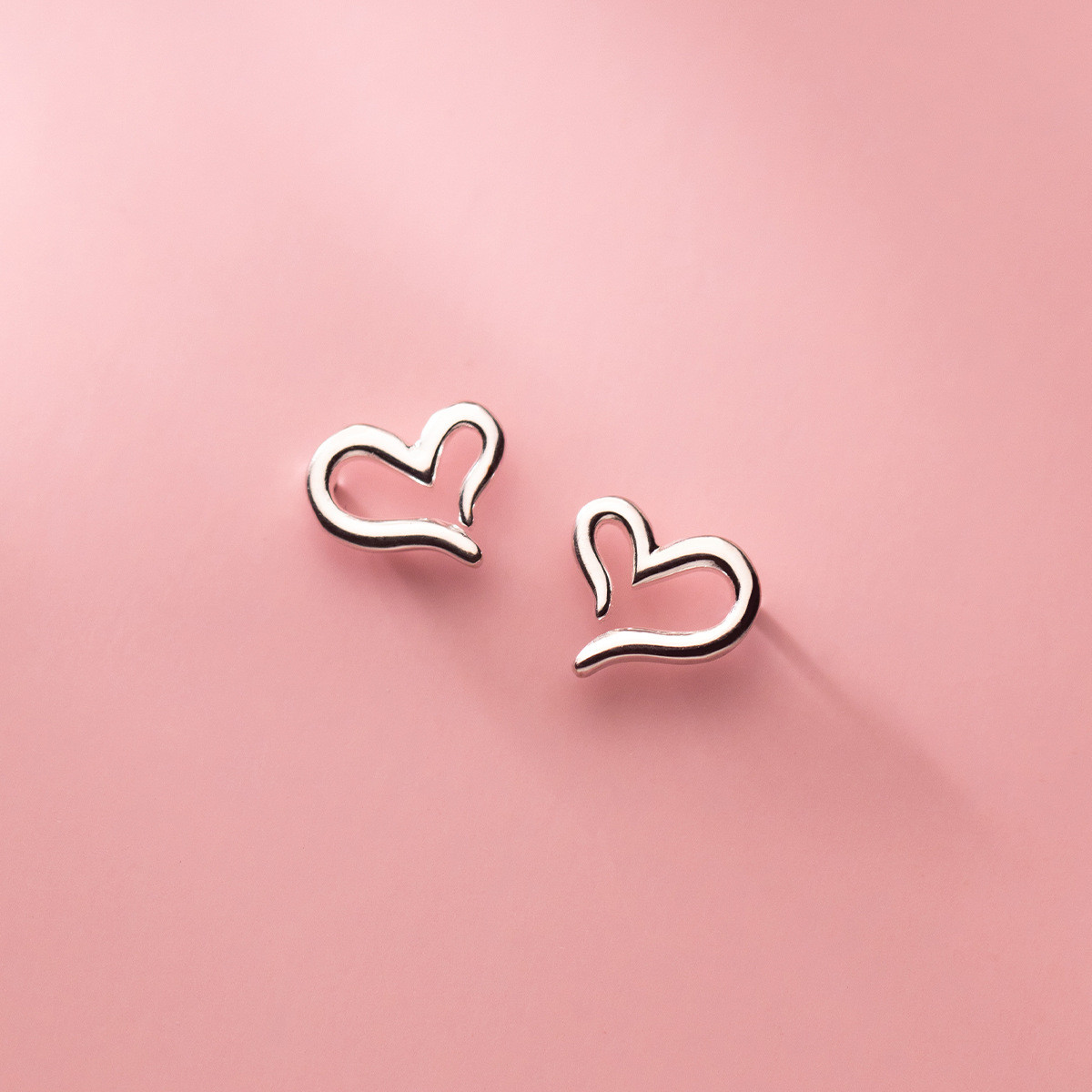 s925 sterling silver silver vintage simple chic heart chain earrings