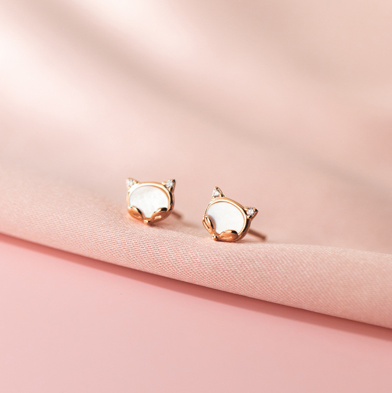 s925 sterling silver cute rhinestone simple shell earrings