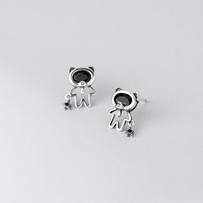 s925 sterling silver trendy rhinestone hollowed earrings
